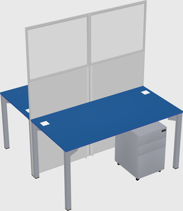 Prism Blue Shared L-Shaped Office Cubicle Panel System With Mobile Drawers For 3 Persons