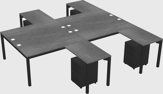 Grey Shared L-Shaped Office Cubicle Panel System With Mobile Drawers For 4 Persons
