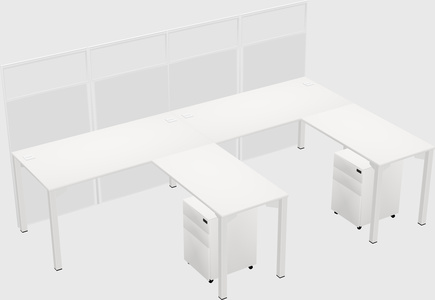 White Shared L-Shaped Office Cubicle Panel System With Mobile Drawers For 2 Persons