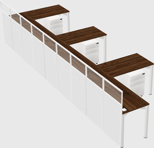 Columbia Walnut Shared L-Shaped Office Cubicle Panel System With Mobile Drawers For 3 Persons