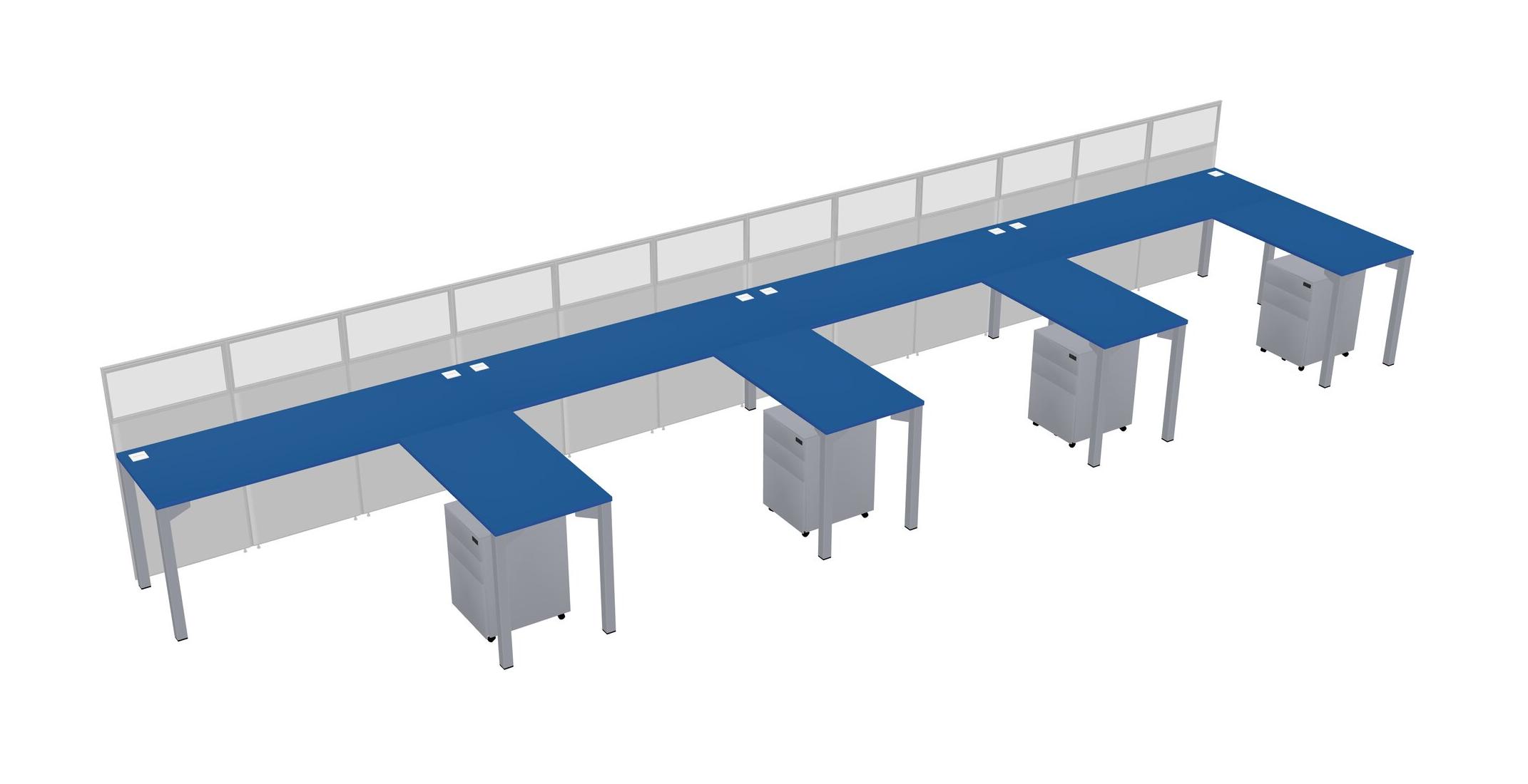 Prism Blue Shared L-Shaped Office Cubicle Panel System With Mobile Drawers For 4 Persons