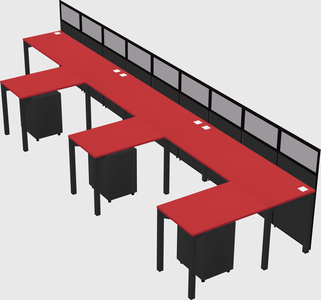 Prism Red Shared L-Shaped Office Cubicle Panel System With Mobile Drawers For 3 Persons