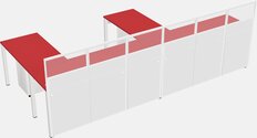 Prism Red Shared L-Shaped Office Cubicle Panel System With Mobile Drawers For 2 Persons