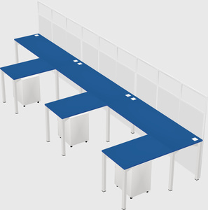 Prism Blue Shared L-Shaped Office Cubicle Panel System With Mobile Drawers For 3 Persons