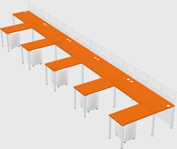 Orange Shared L-Shaped Office Cubicle Panel System With Mobile Drawers For 5 Persons