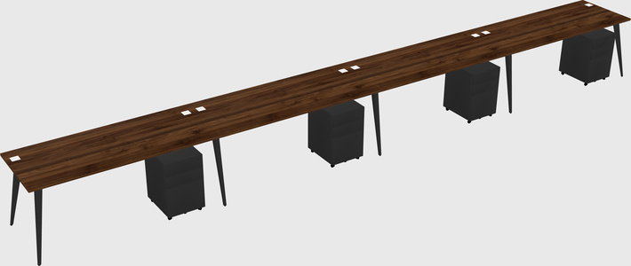 Columbia Walnut Shared L-Shaped Office Cubicle Panel System With Mobile Drawers For 4 Persons