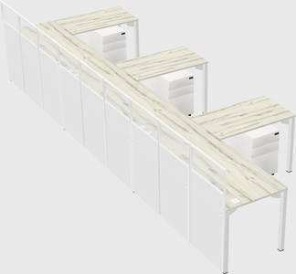Heinne Holz Shared L-Shaped Office Cubicle Panel System With Mobile Drawers For 3 Persons