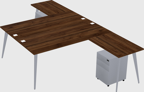 Columbia Walnut Shared L-Shaped Office Cubicle Panel System With Mobile Drawers For 3 Persons