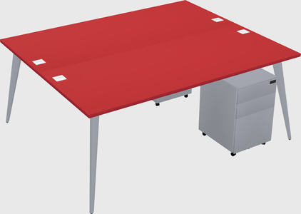 Prism Red Shared L-Shaped Office Cubicle Panel System With Mobile Drawers For 3 Persons