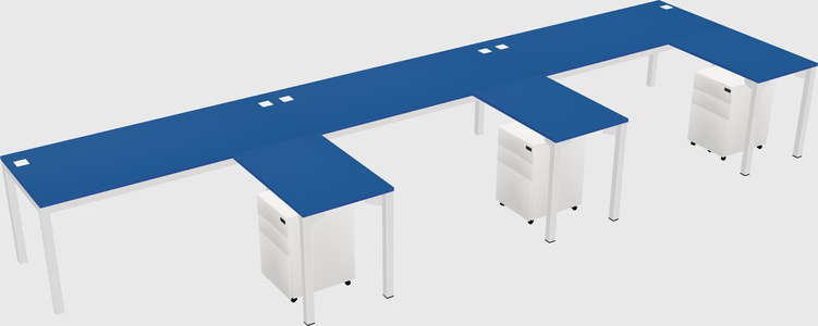 Prism Blue Shared L-Shaped Office Cubicle Panel System With Mobile Drawers For 3 Persons