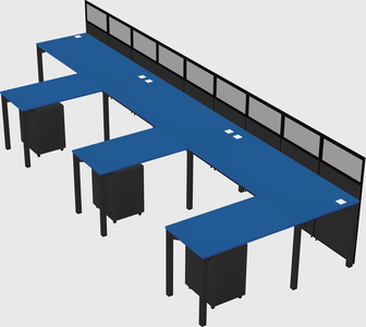 Prism Blue Shared L-Shaped Office Cubicle Panel System With Mobile Drawers For 3 Persons