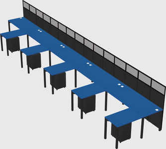 Prism Blue Shared L-Shaped Office Cubicle Panel System With Mobile Drawers For 5 Persons