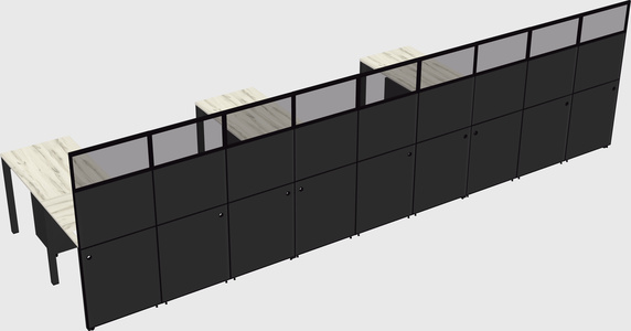Heinne Holz Shared L-Shaped Office Cubicle Panel System With Mobile Drawers For 3 Persons