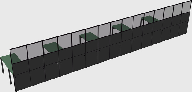 Green Shared L-Shaped Office Cubicle Panel System For 5 Persons