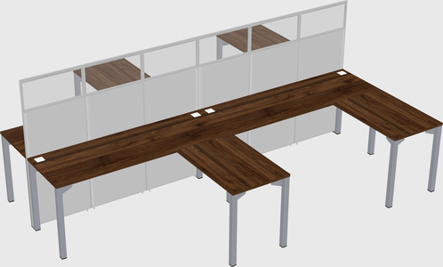 Columbia Walnut Shared L-Shaped Office Cubicle Panel System For 4 Persons