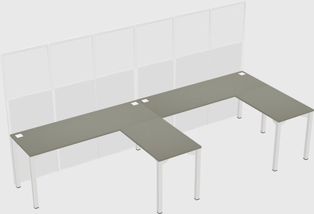 Grey Shadows Shared L-Shaped Office Cubicle Panel System For 2 Persons