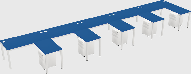 Prism Blue Shared L-Shaped Office Cubicle Panel System For 5 Persons