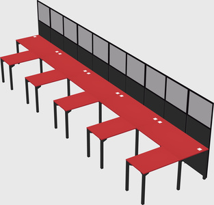 Prism Red Shared L-Shaped Office Cubicle Panel System For 5 Persons