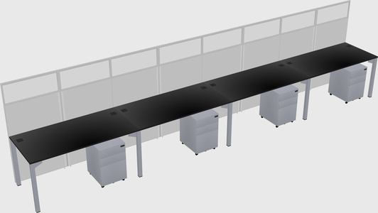 Black Shared L-Shaped Office Cubicle Panel System For 4 Persons