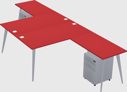 Prism Red Shared L-Shaped Office Cubicle Panel System For 2 Persons