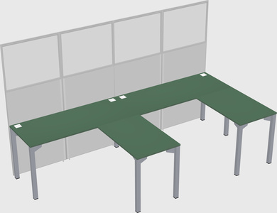 Green Shared L-Shaped Office Cubicle Panel System For 2 Persons