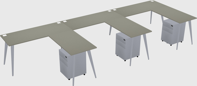 Grey Shadows Shared L-Shaped Office Cubicle Panel System For 3 Persons