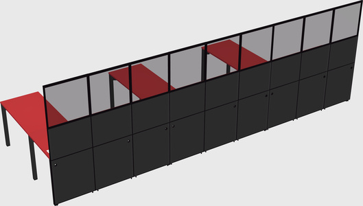Prism Red Shared L-Shaped Office Cubicle Panel System For 3 Persons