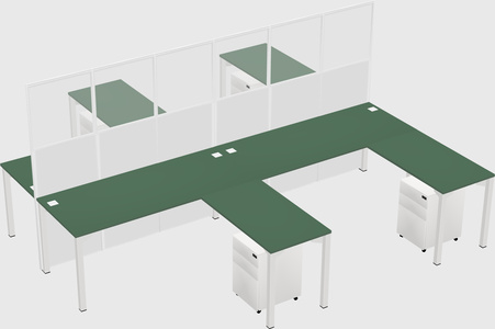 Green Shared L-Shaped Office Cubicle Panel System For 3 Persons