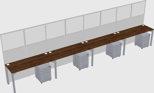 Columbia Walnut Shared L-Shaped Office Cubicle Panel System For 4 Persons