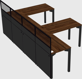 Columbia Walnut Shared L-Shaped Office Cubicle Panel System For 2 Persons