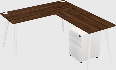 Columbia Walnut Shared L-Shaped Office Cubicle Panel System With Mobile Drawers For 1 Persons