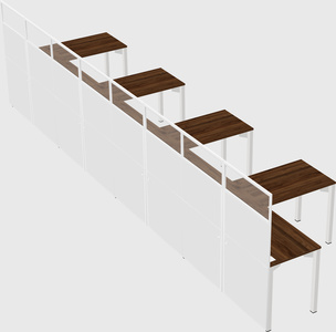 Columbia Walnut Shared L-Shaped Office Cubicle Panel System For 4 Persons