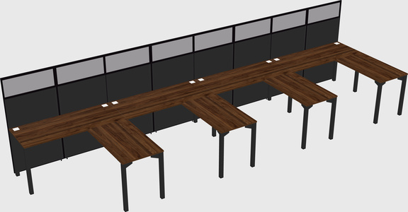 Columbia Walnut Shared L-Shaped Office Cubicle Panel System For 4 Persons