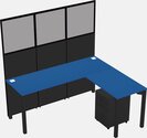 Prism Blue Shared L-Shaped Office Cubicle Panel System With Mobile Drawers For 1 Persons