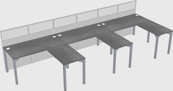 Grey Shared L-Shaped Office Cubicle Panel System For 3 Persons