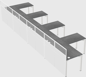Grey Shared L-Shaped Office Cubicle Panel System For 4 Persons