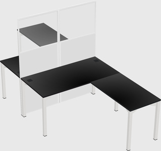 Black Shared L-Shaped Office Cubicle Panel System For 2 Persons