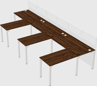Columbia Walnut Shared L-Shaped Office Cubicle Panel System For 3 Persons