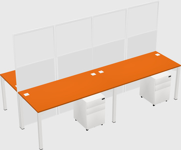 Orange Shared L-Shaped Office Cubicle Panel System For 4 Persons