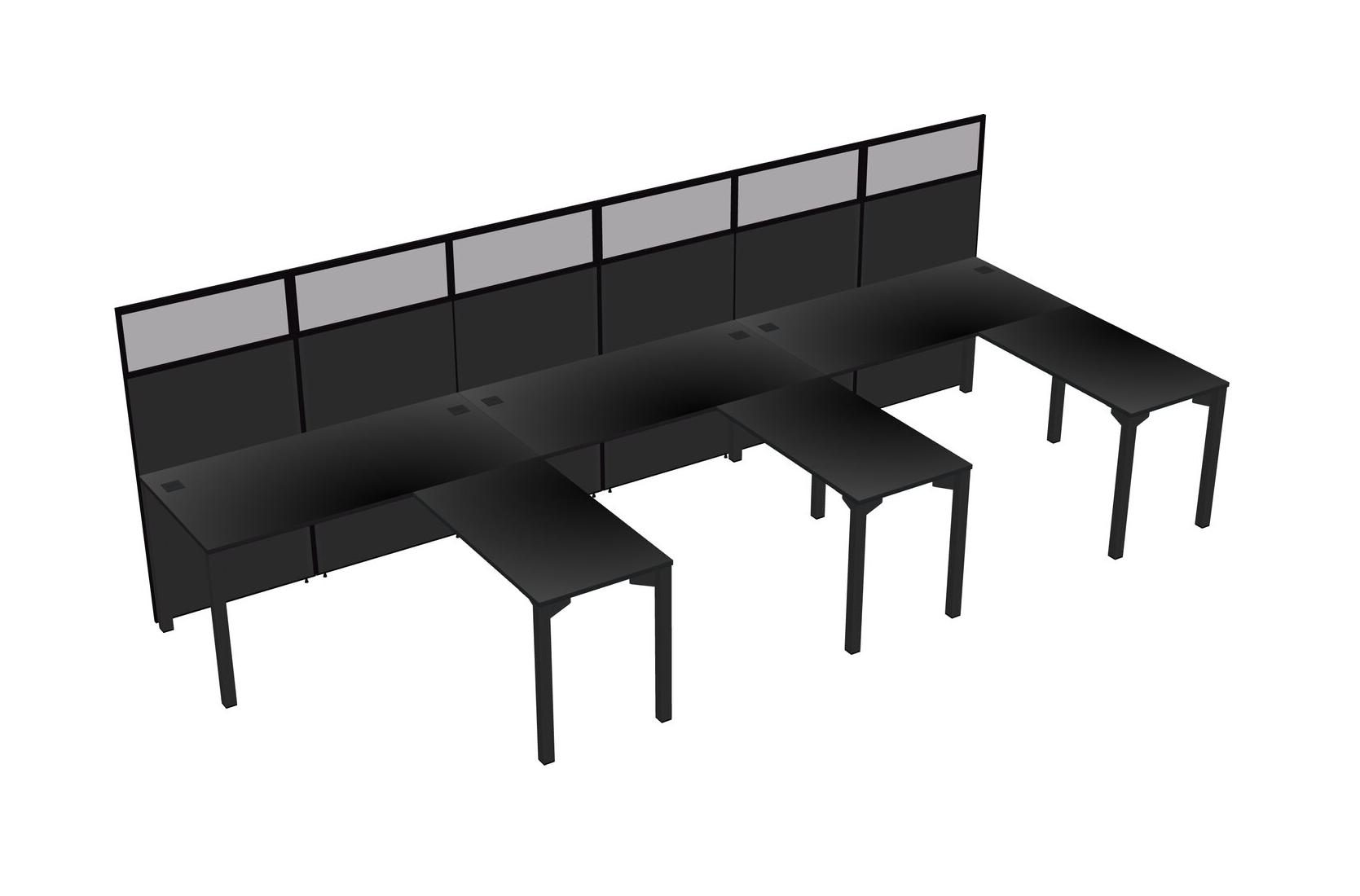 Black Shared L-Shaped Office Cubicle Panel System For 3 Persons