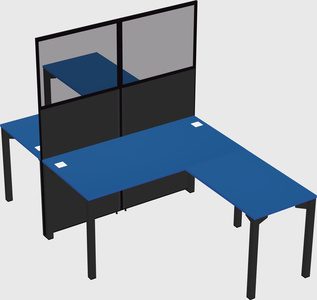 Prism Blue Shared L-Shaped Office Cubicle Panel System For 3 Persons