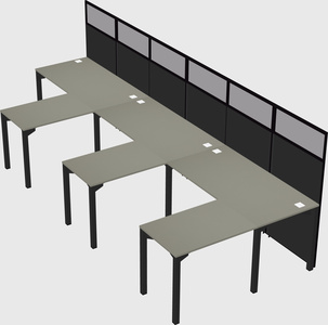 Grey Shadows Shared L-Shaped Office Cubicle Panel System For 3 Persons