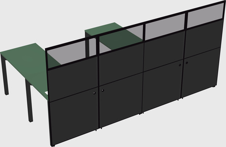 Green Shared L-Shaped Office Cubicle Panel System For 2 Persons