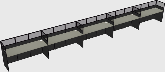 Grey Shadows Shared L-Shaped Office Cubicle Panel System For 5 Persons