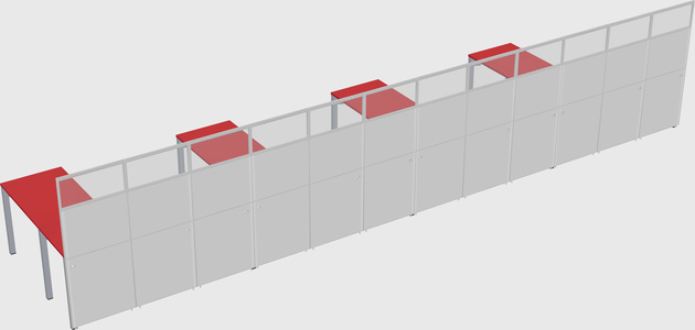 Prism Red Shared L-Shaped Office Cubicle Panel System For 4 Persons