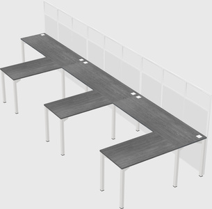 Grey Shared L-Shaped Office Cubicle Panel System For 3 Persons