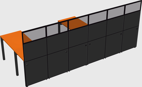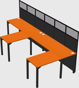 Orange Shared L-Shaped Office Cubicle Panel System For 2 Persons