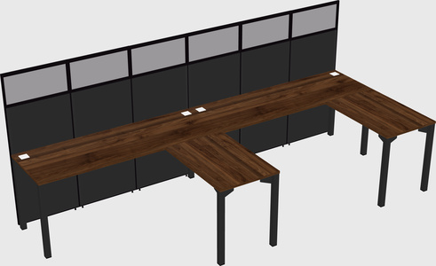 Columbia Walnut Shared L-Shaped Office Cubicle Panel System For 2 Persons
