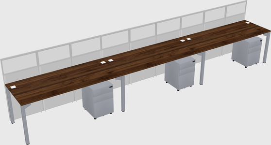 Columbia Walnut Shared L-Shaped Office Cubicle Panel System For 3 Persons