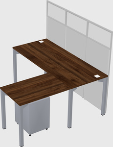 Columbia Walnut Shared L-Shaped Office Cubicle Panel System With Mobile Drawers For 1 Persons